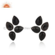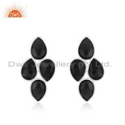 Sterling Fine Silver Black Onyx Gemstone Dangle Earrings Jewelry