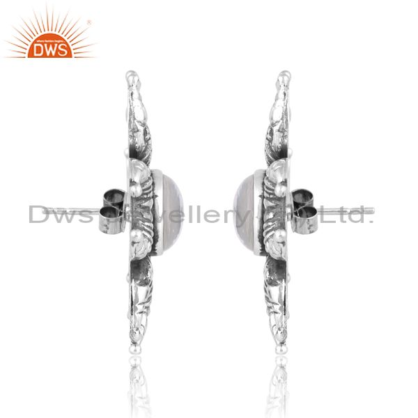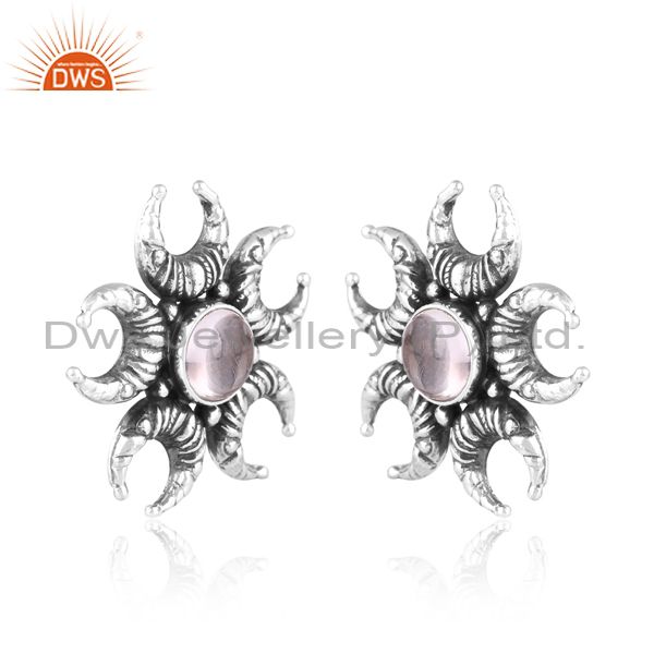 Sterling Half Moon Earrings With Crystal Quartz Round Stone
