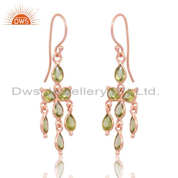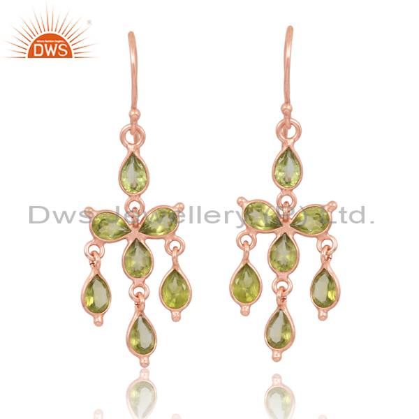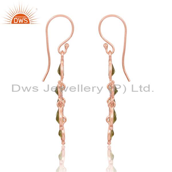 Sterling Silver & 18K Rose Gold Peridot Cut Pear Earrings