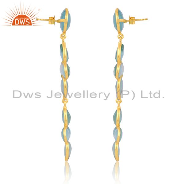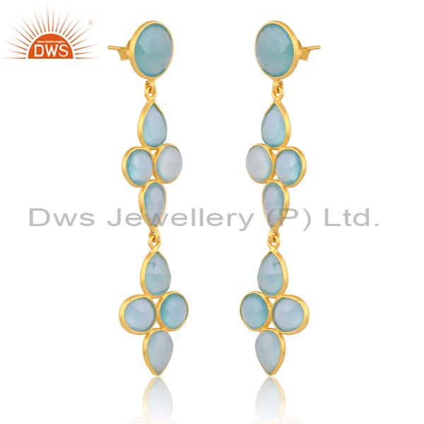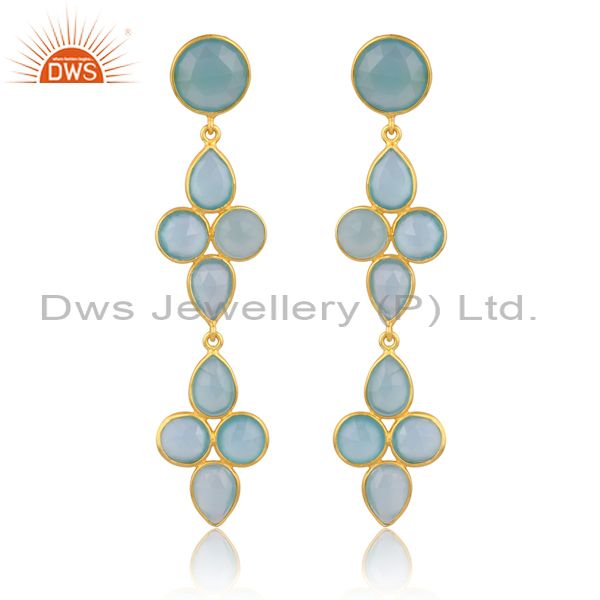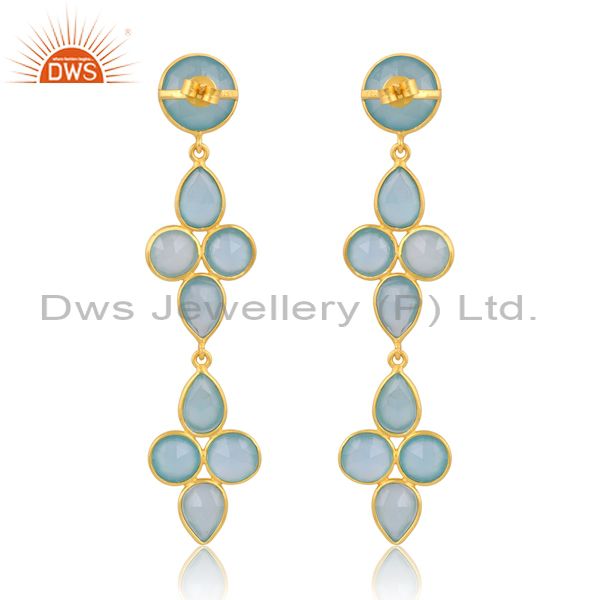 Sterling Silver 18K Gold Plated Aqua Chalcedony Earring