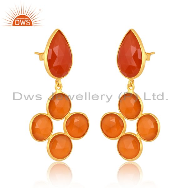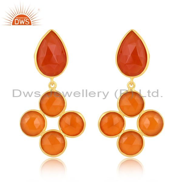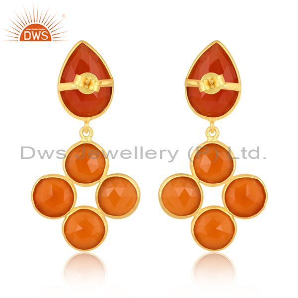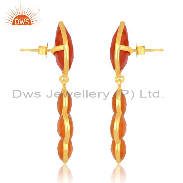 Sterling Silver 18K Gold Plated Earrings With Red Onyx