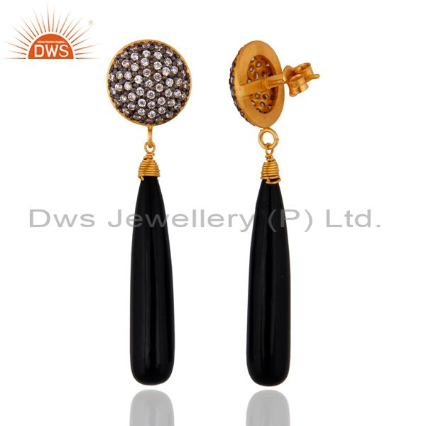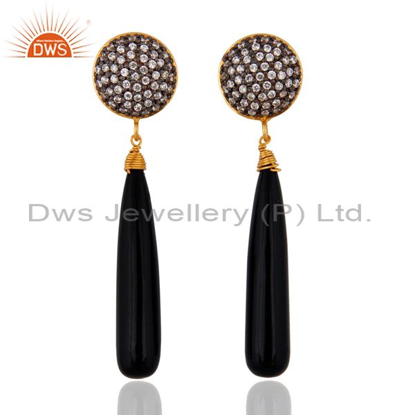 Sterling Silver Black Onyx Earrings With 18K Gold Plated White Zircon Jewelry