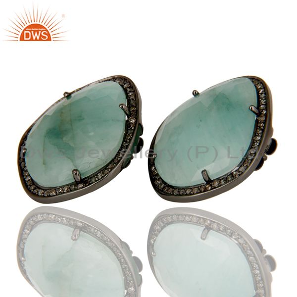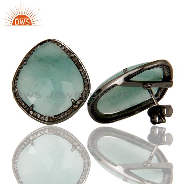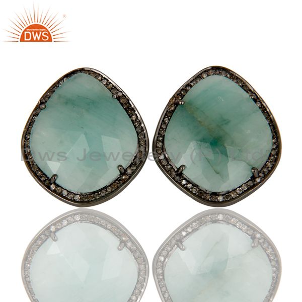 Sterling Silver Black Oxidized Emerald and Diamond Stud Earring