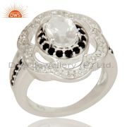 Sterling Silver Crystal Quartz & Black Spinel Dangle Earrings With White Topaz