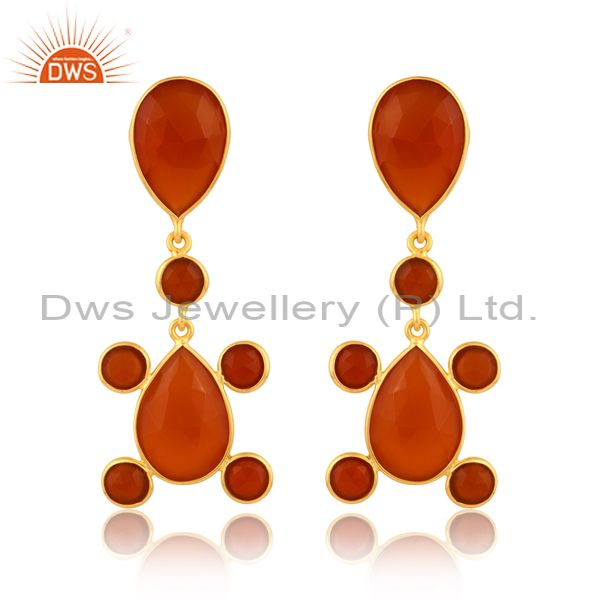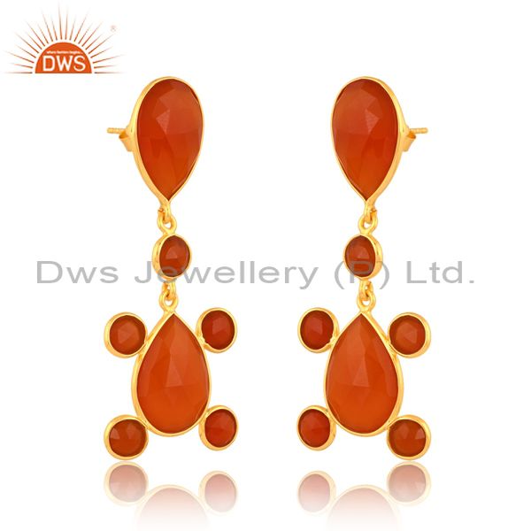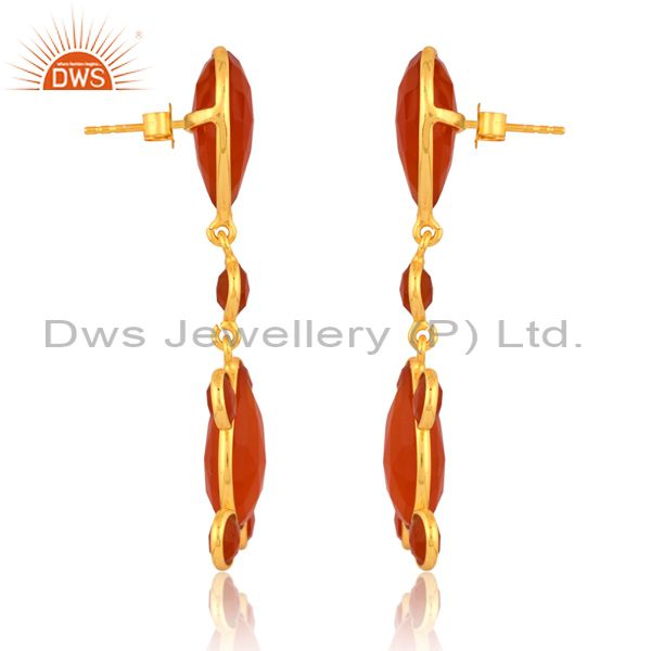 Sterling Silver Drop Earring With Red Onyx Briollette Stone