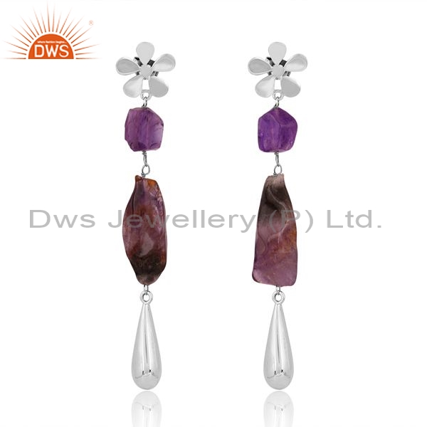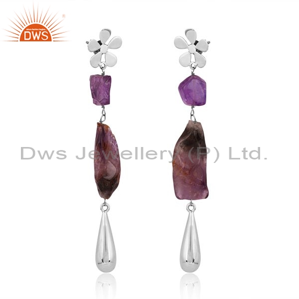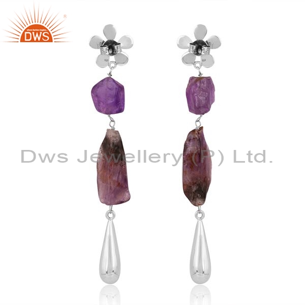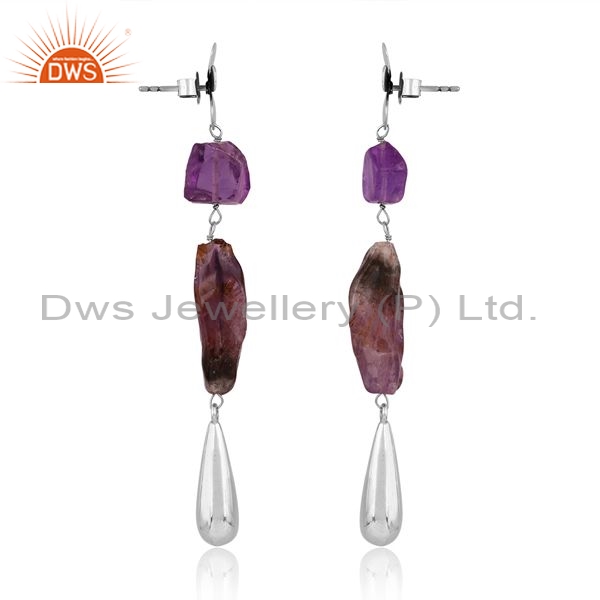 Sterling Silver Drop Earrings With Amethyst And Ginger Stone