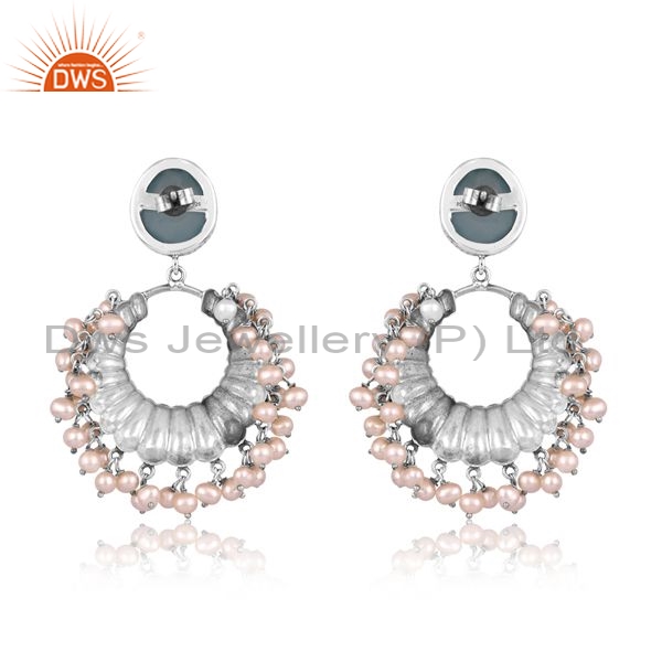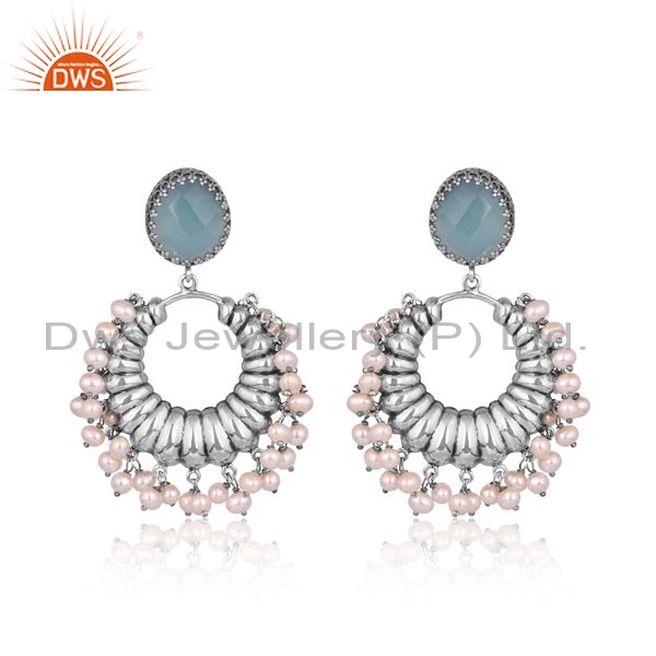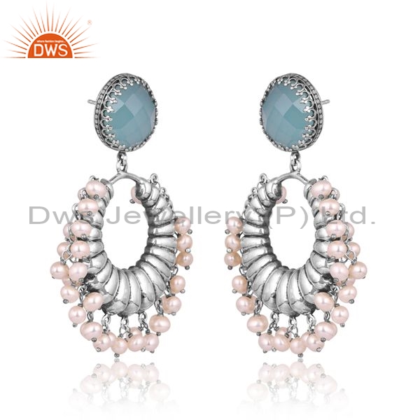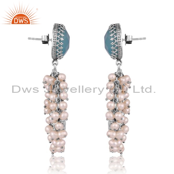 Sterling Silver Drop Earrings With Aqua Chalcedony & Pearl