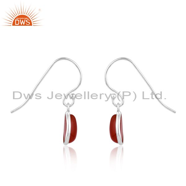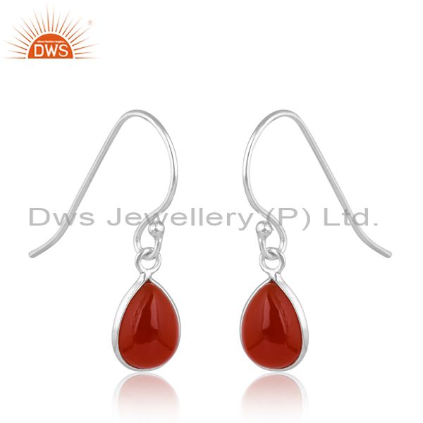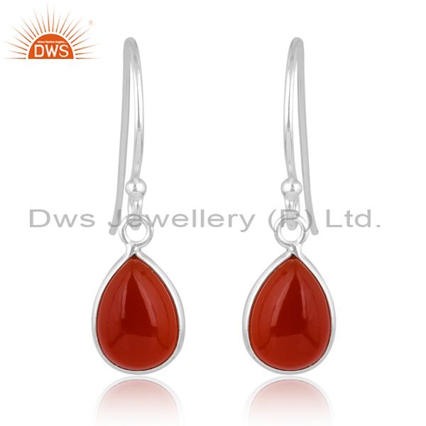 Sterling Silver Drop Earrings With Red Onyx Pear Cut