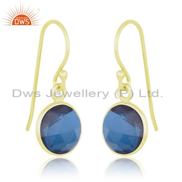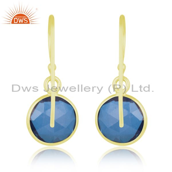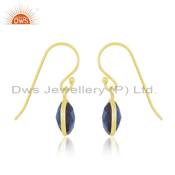 Sterling Silver Drops With Beautiful Blue Cut Stone