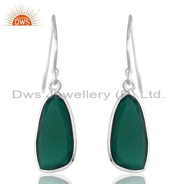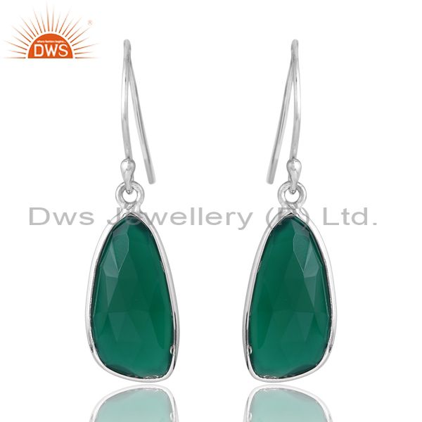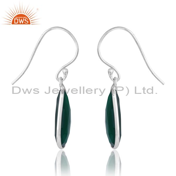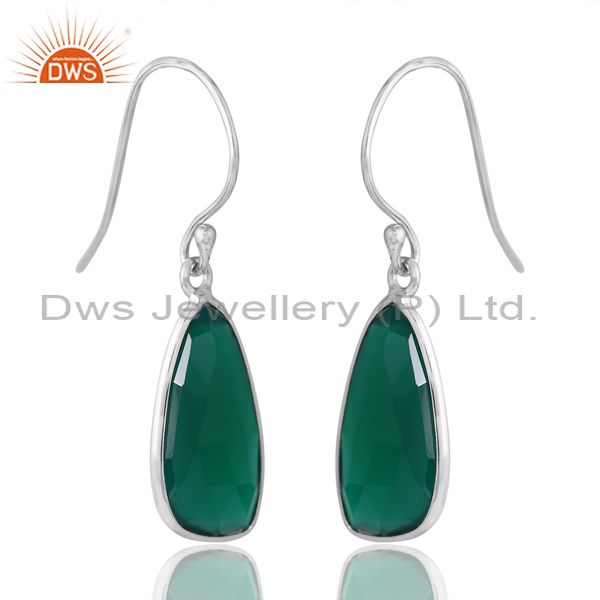 Sterling Silver Drops With Green Onyx Checker Unshaped