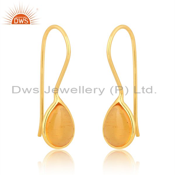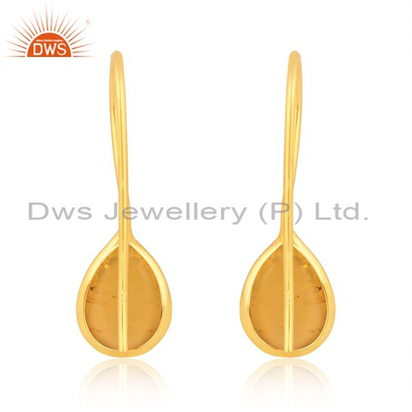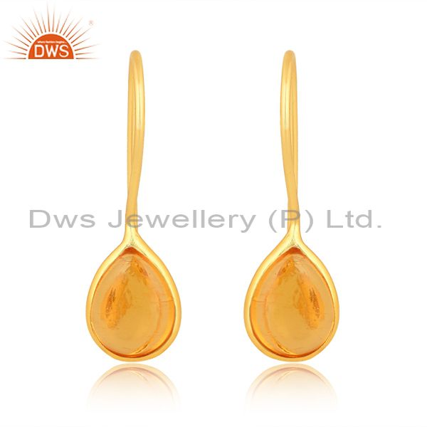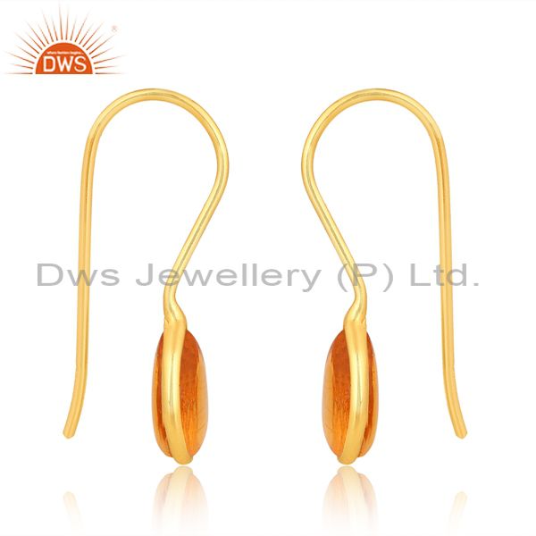 Sterling Silver Earring 18K Gold With Amber Cultured Plain