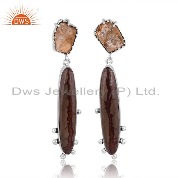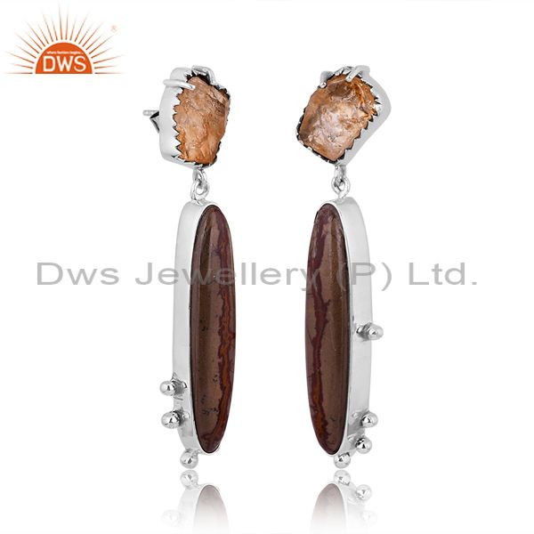 Sterling Silver Earring With Citrine And Norena Jasper Stone