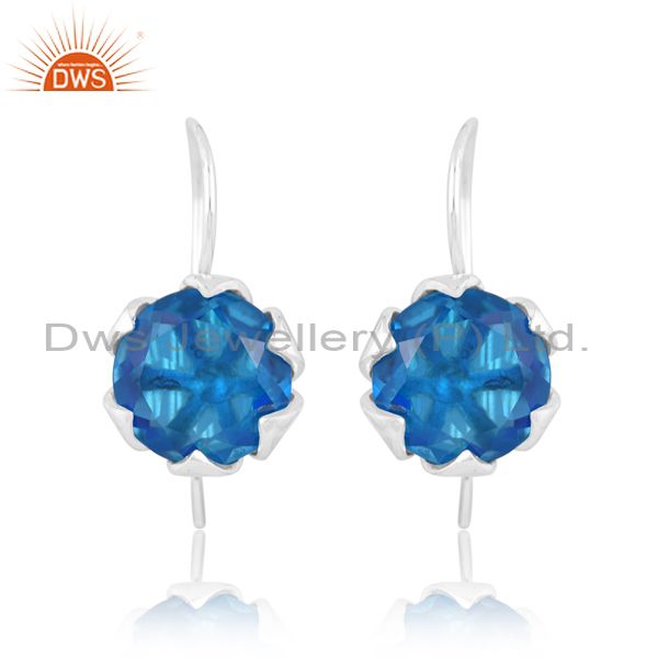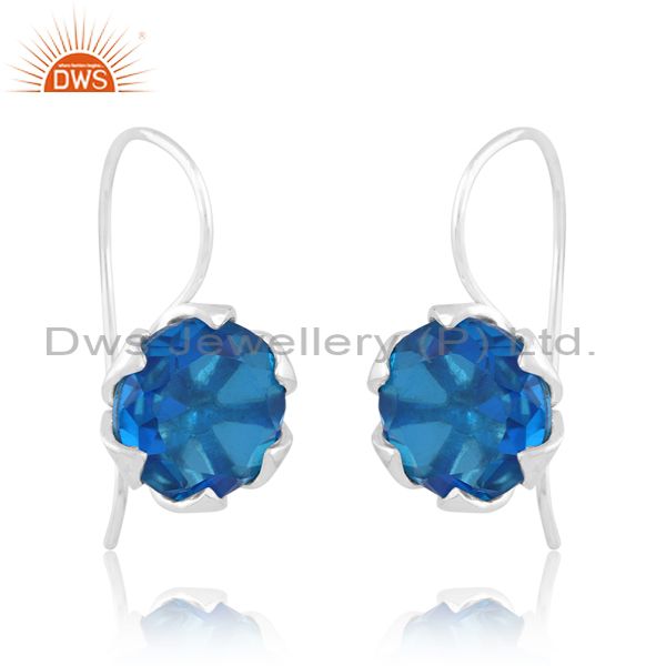 Sterling Silver Earring With Doublet Swiss Blue Topaz Stone