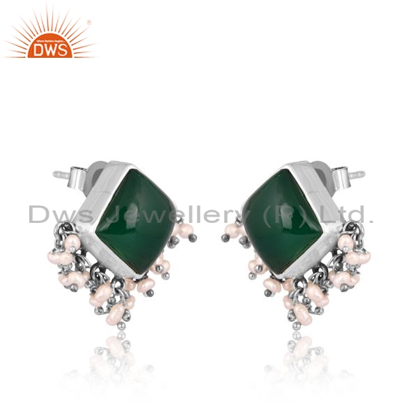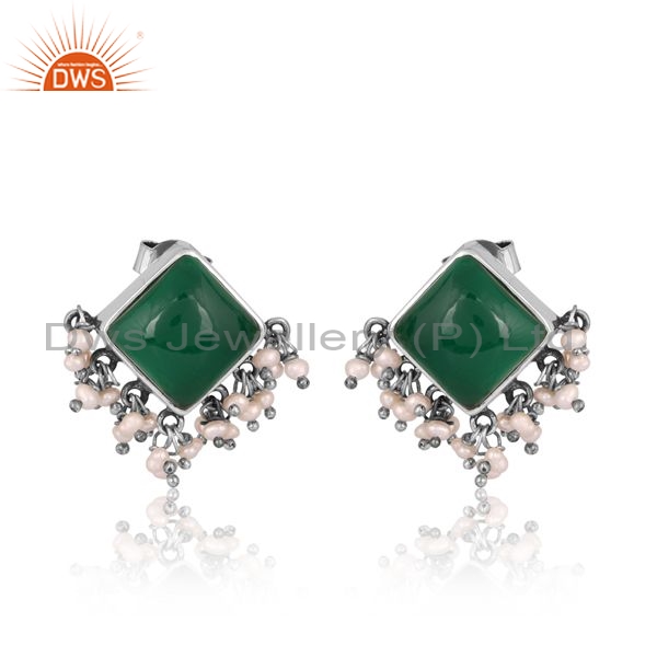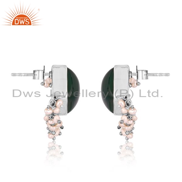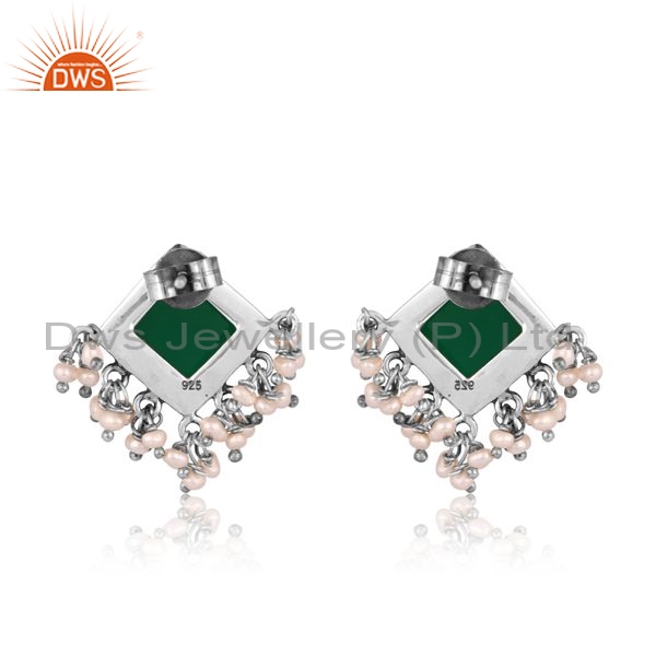Sterling Silver Earring With Pearl And Green Onyx Stone