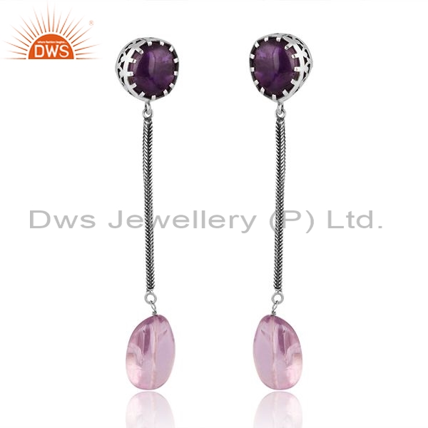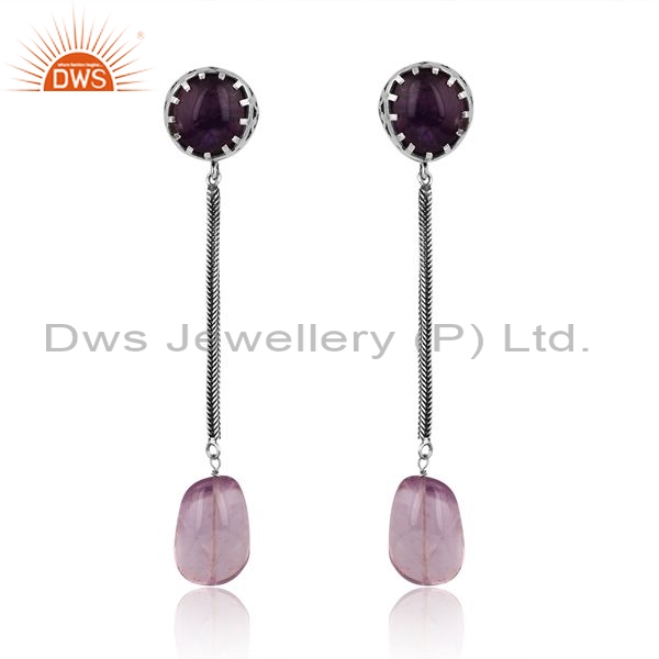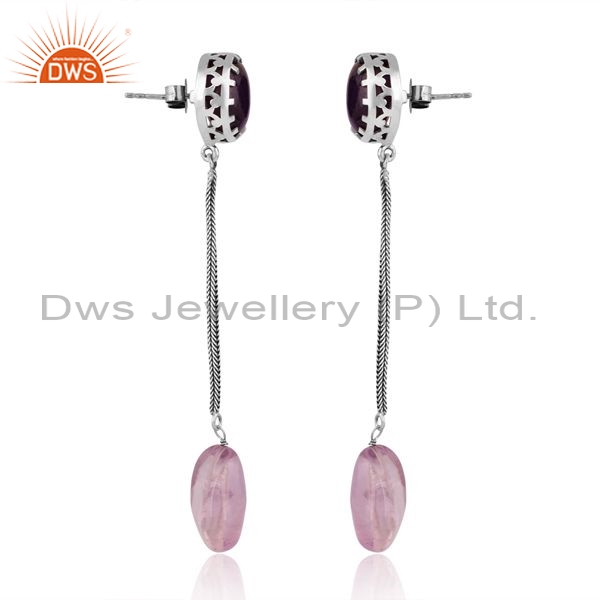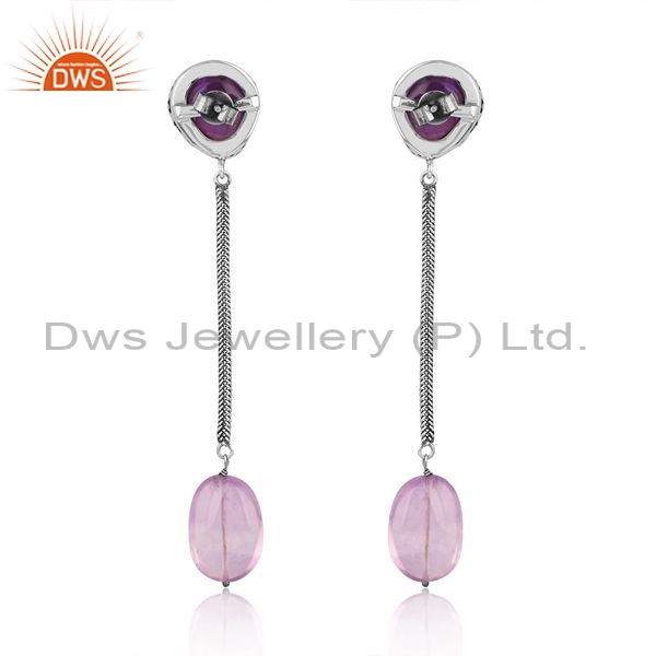 Sterling Silver Earring With Plain And Pink Amethyst Stone
