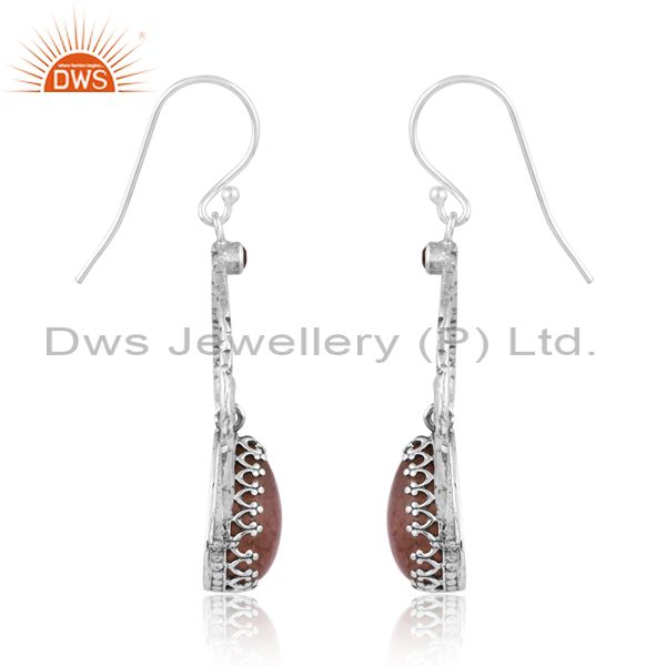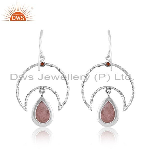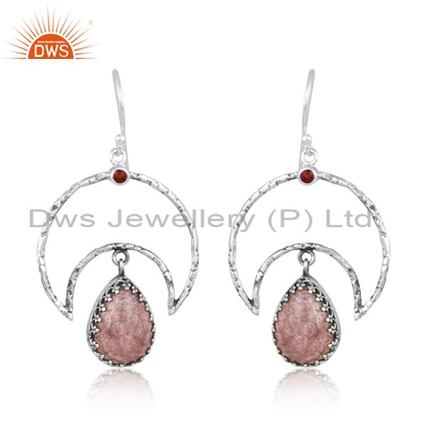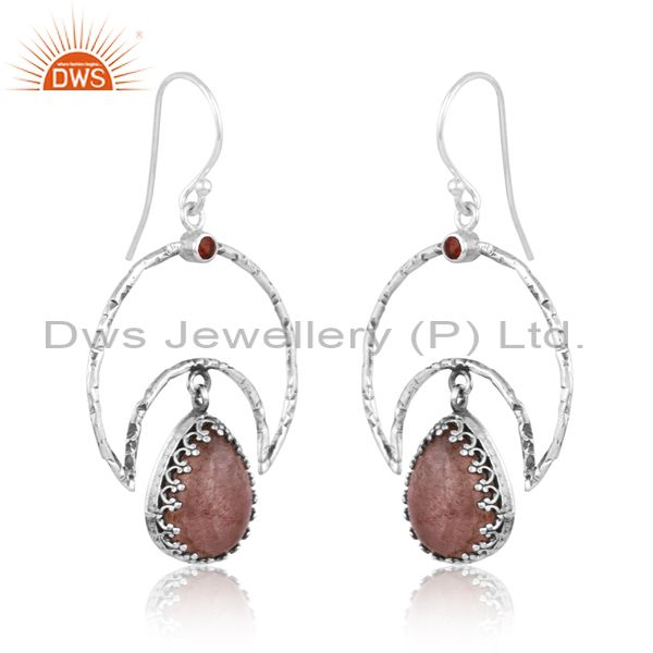 Sterling Silver Earring With Strawberry Quartz Cabochon