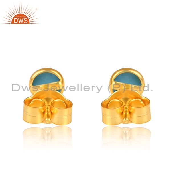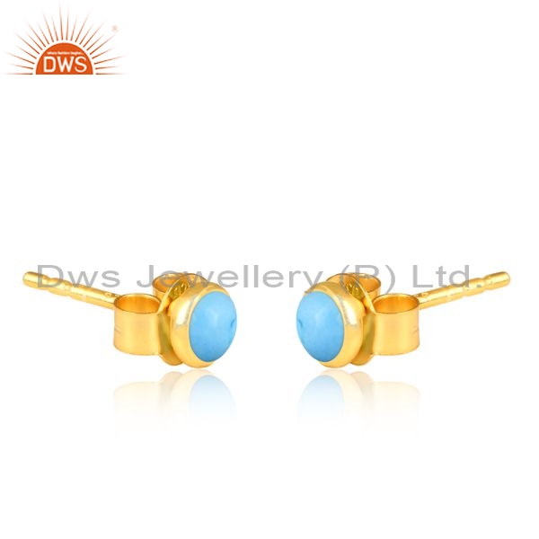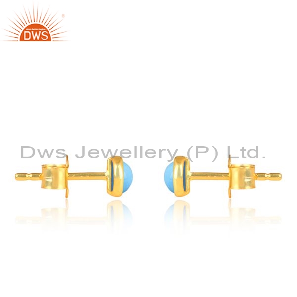 Sterling Silver Earring With Turquoise Cabushion Round Stone