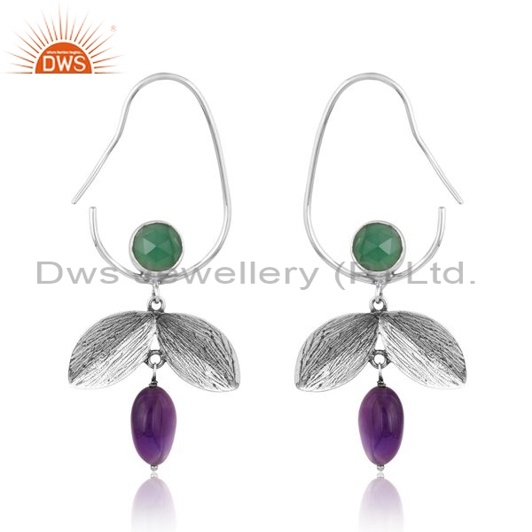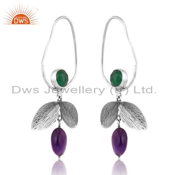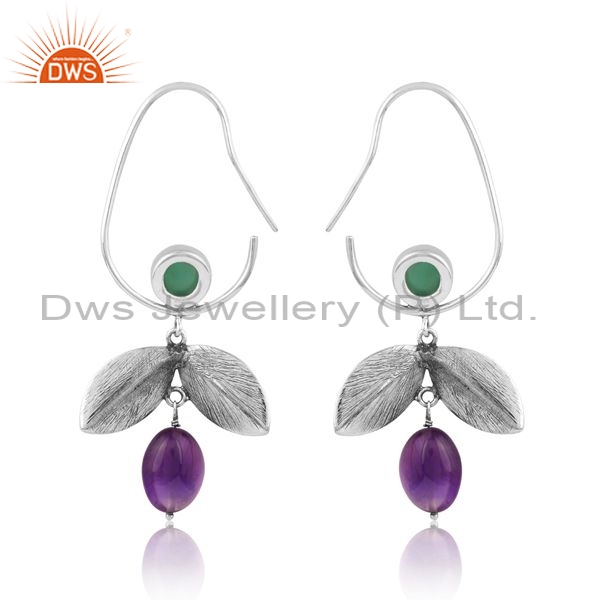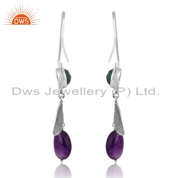 Sterling Silver Earrings With Amethyst And Green Onyx Stone
