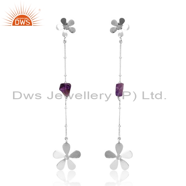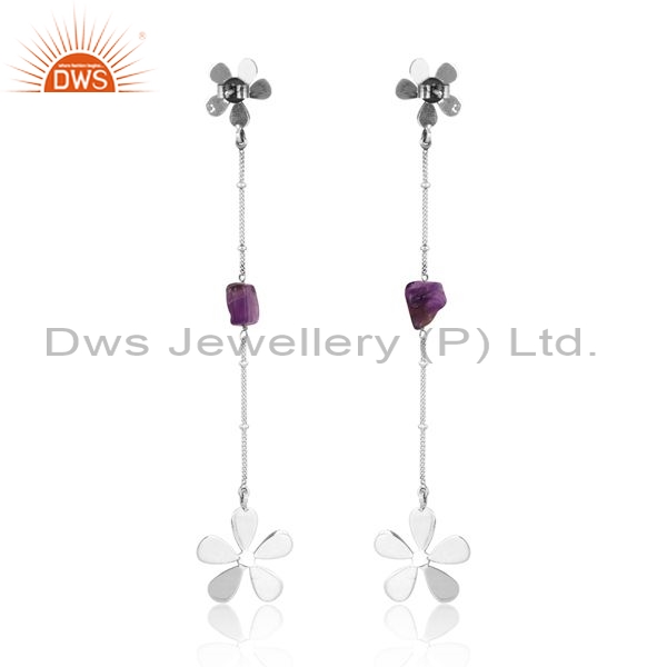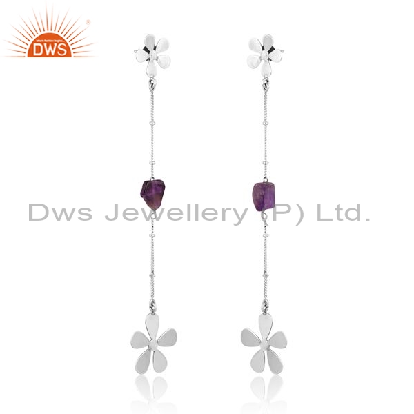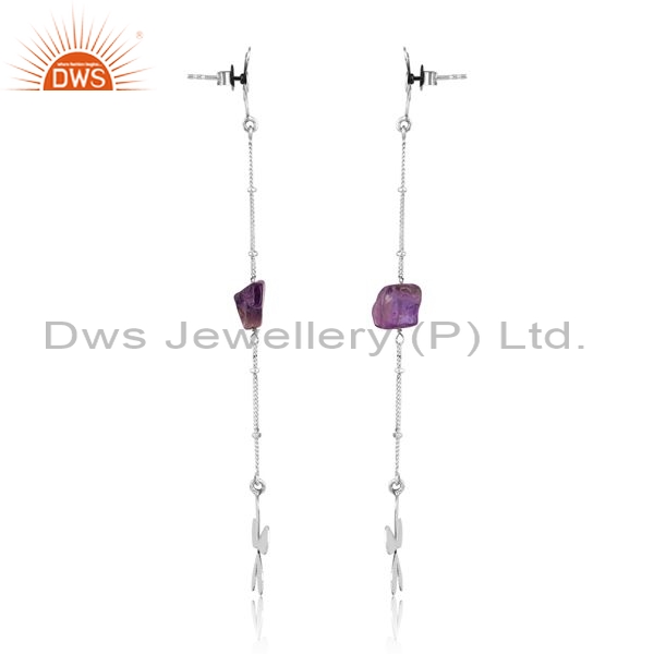 Sterling Silver Earrings With Amethyst Rough Unshaped Stone