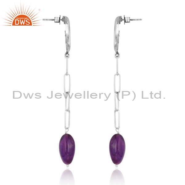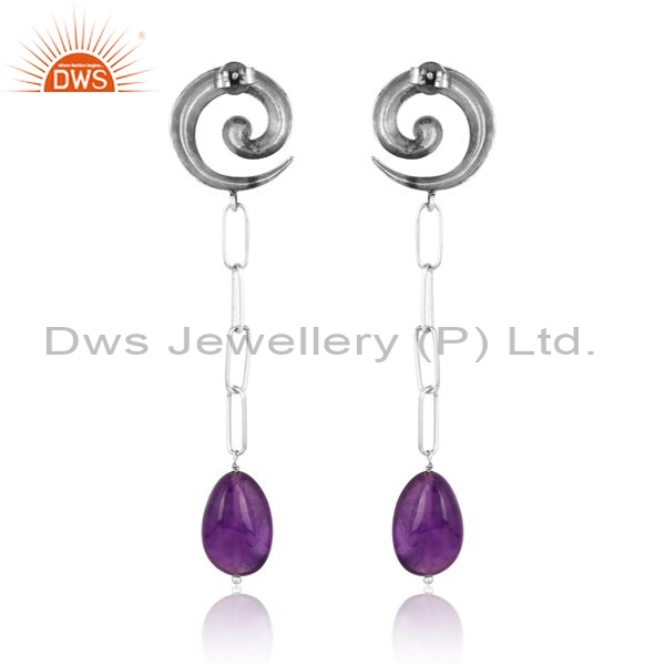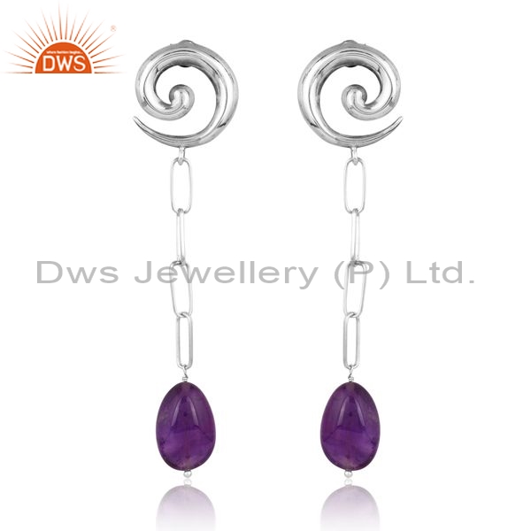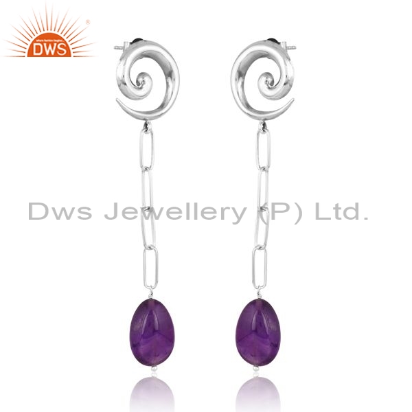 Sterling Silver Earrings With Amethyst Temple Unshaped Stone