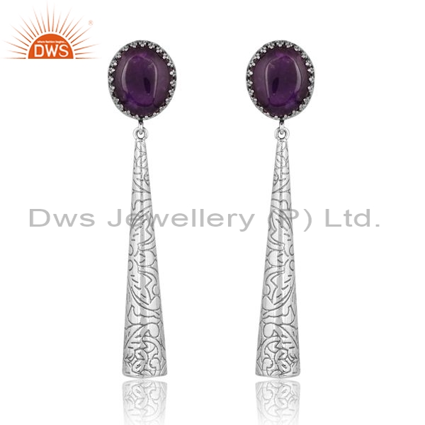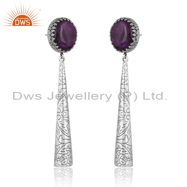Sterling Silver Earrings With Amethyst Tumble Unshaped Stone