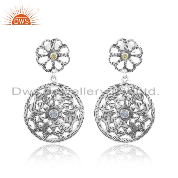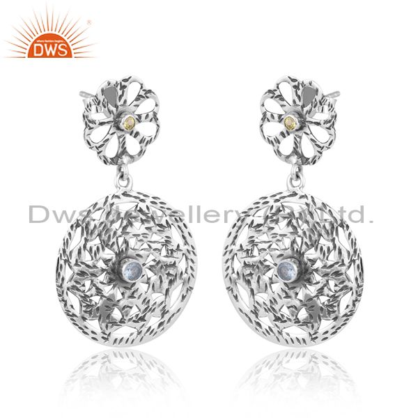 Sterling Silver Earrings With Blue Topaz And Peridot Stone