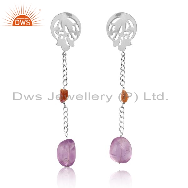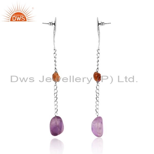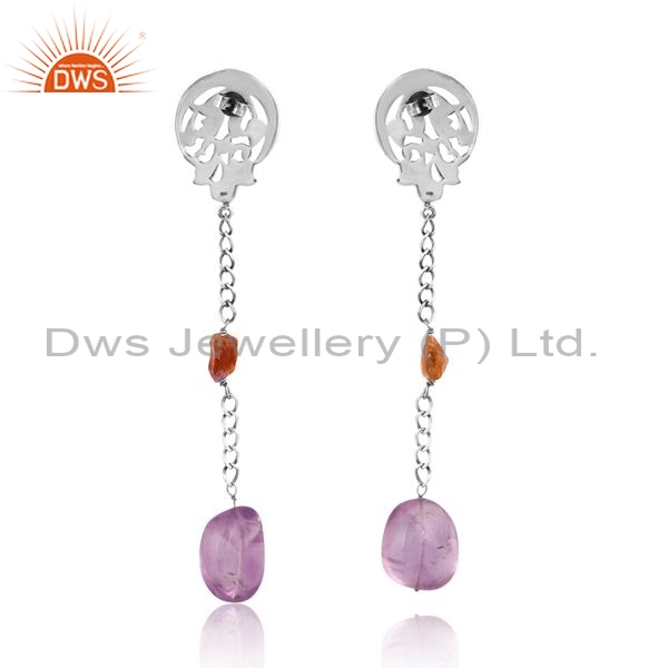 Sterling Silver Earrings With Citrine And Pink Amethyst