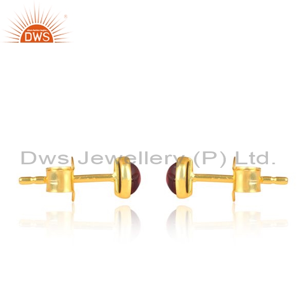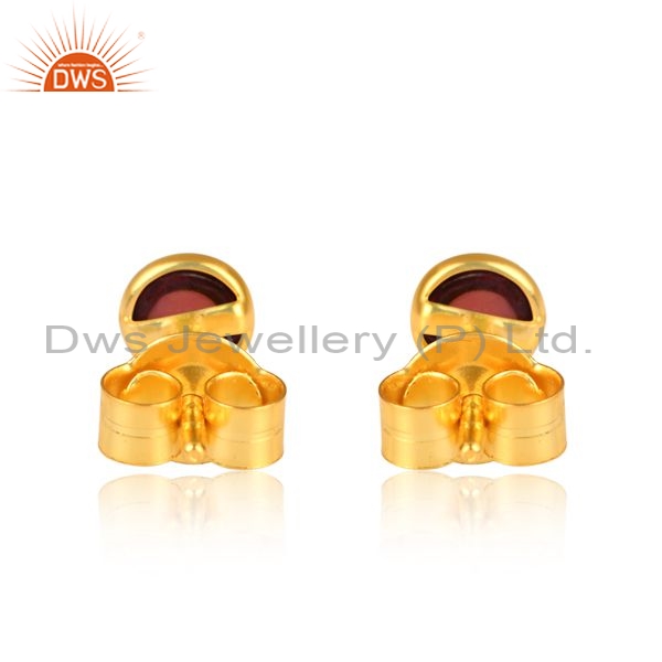 Sterling Silver Earrings With Garnet Cabushion Round Cut