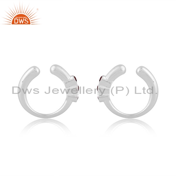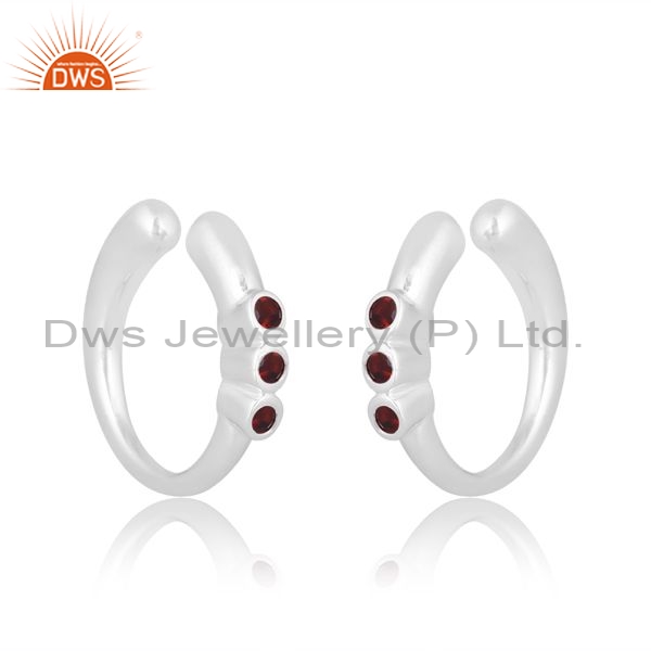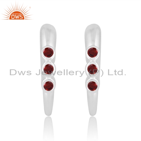 Sterling Silver Earrings With Garnet Round Cut Stone