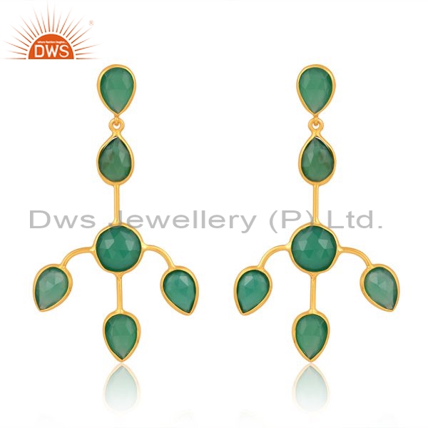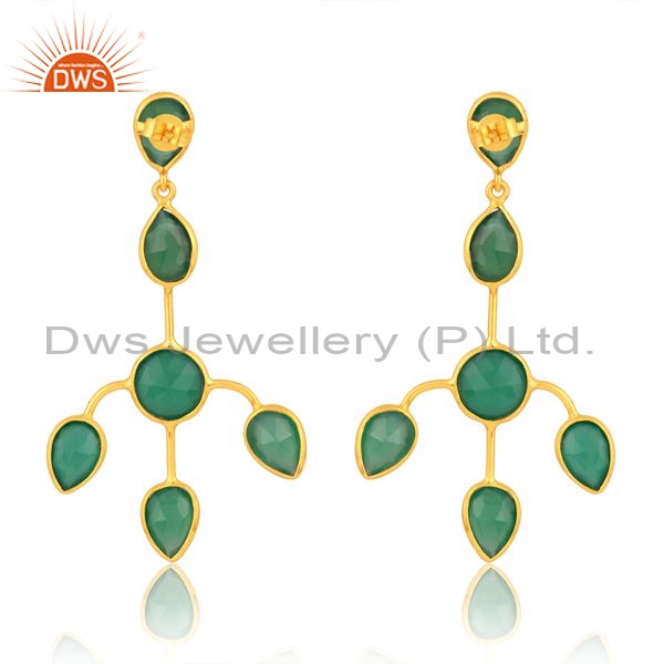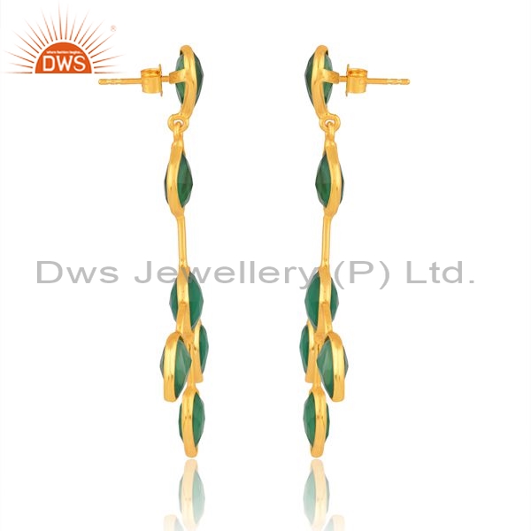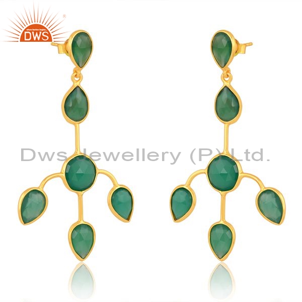 Sterling Silver Earrings With Green Onyx Briolette Stone