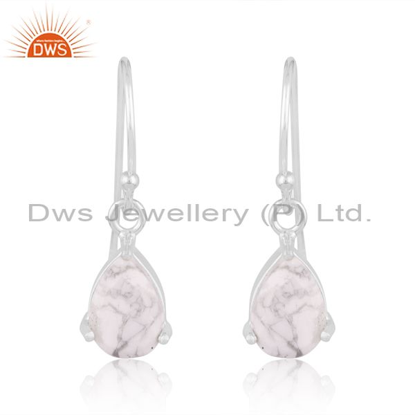 Sterling Silver Earrings With Howlite Cut Pear Stone