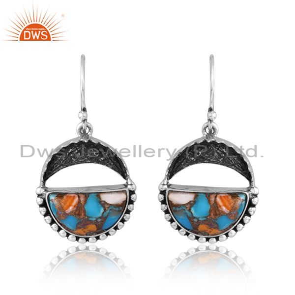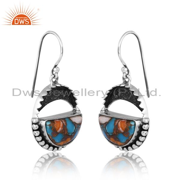Sterling Silver Earrings With Mojave Stone And Cross Bur