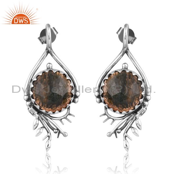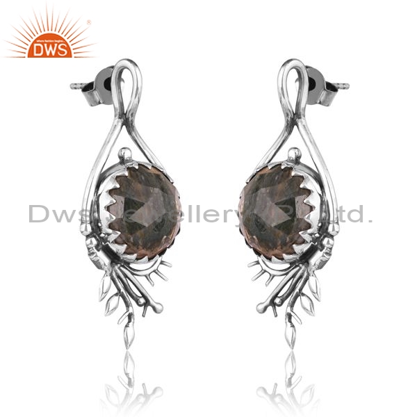 Sterling Silver Earrings With Moss Agate Checker Stone