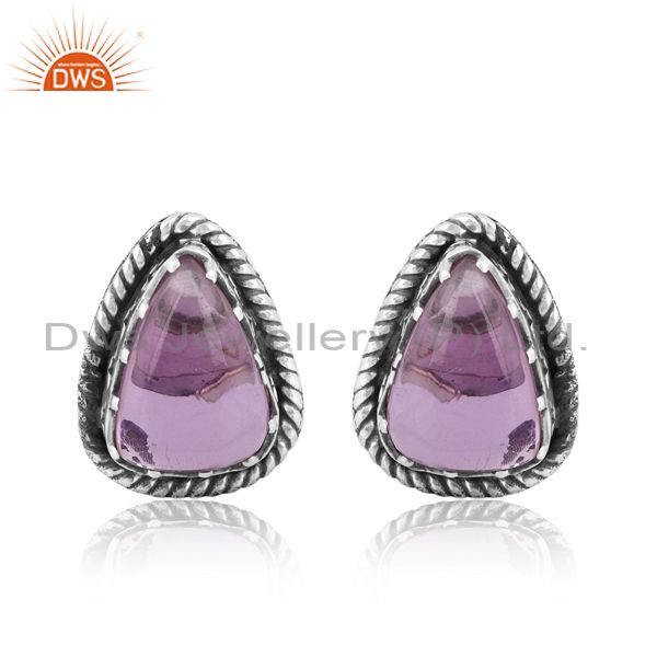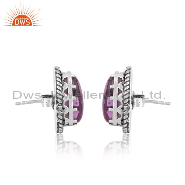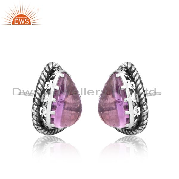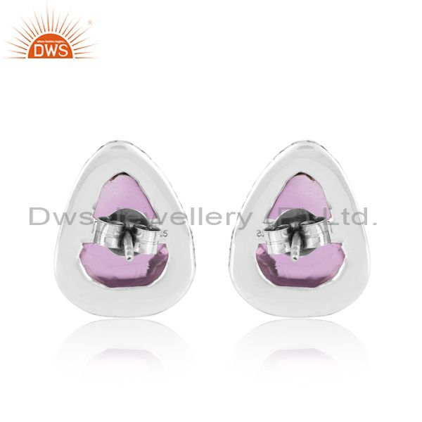 Sterling Silver Earrings With Pink Amethyst Cabushion Stone