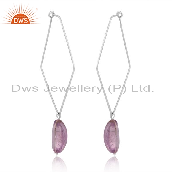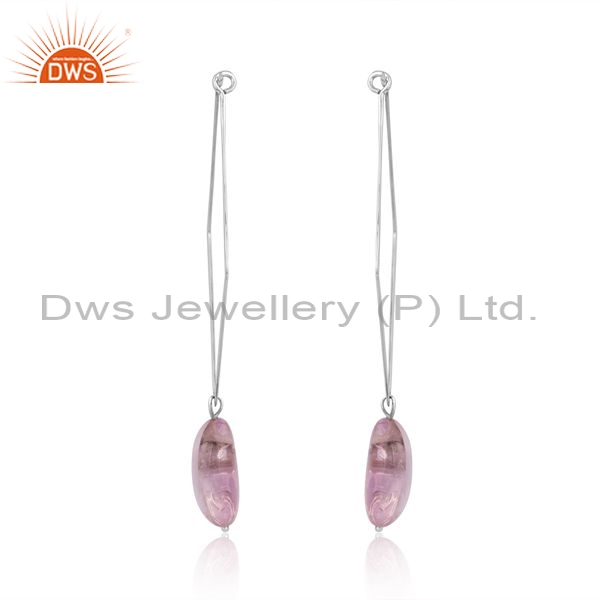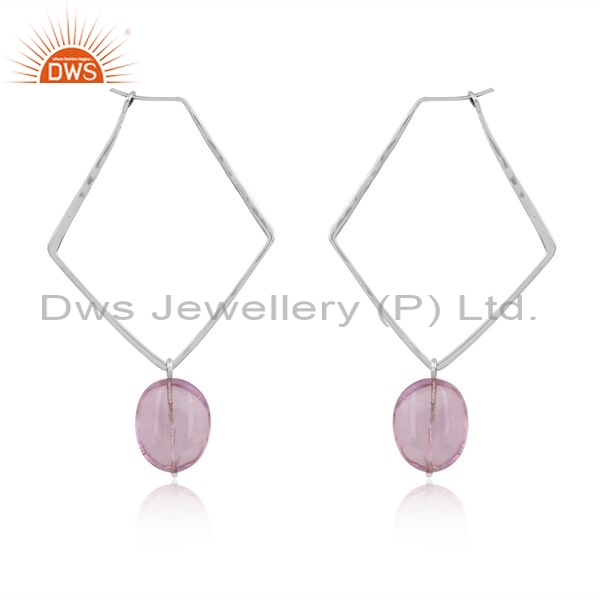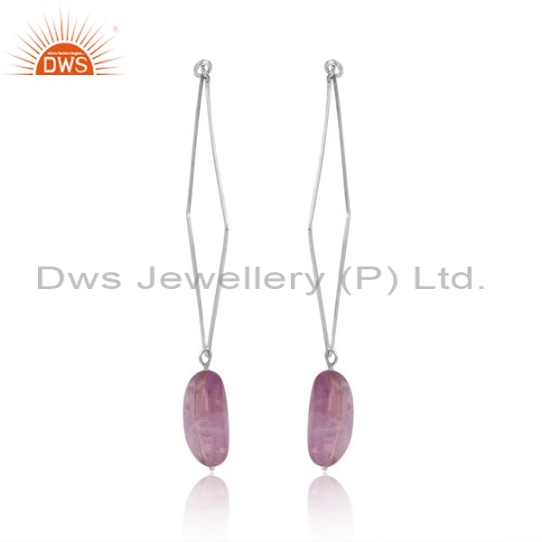 Sterling Silver Earrings With Pink Amethyst Unshaped Stone