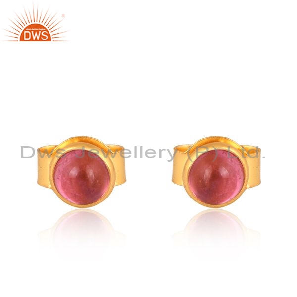 Sterling Silver Earrings With Pink Tourmaline Cabushion
