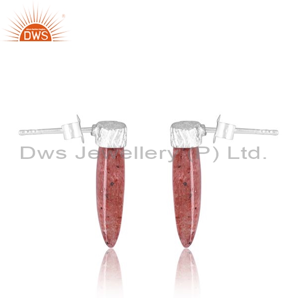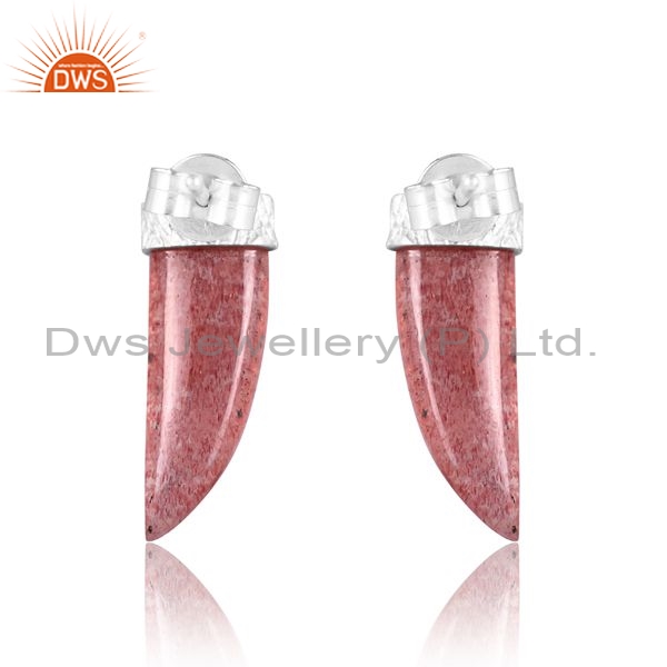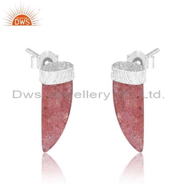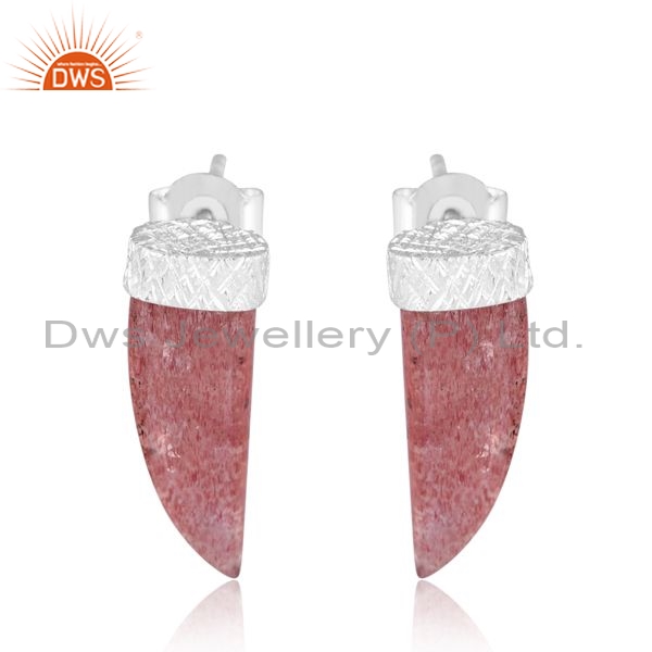 Sterling Silver Earrings With Strawberry Quartz Plain Fancy