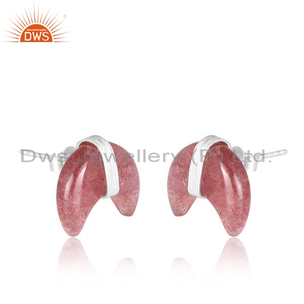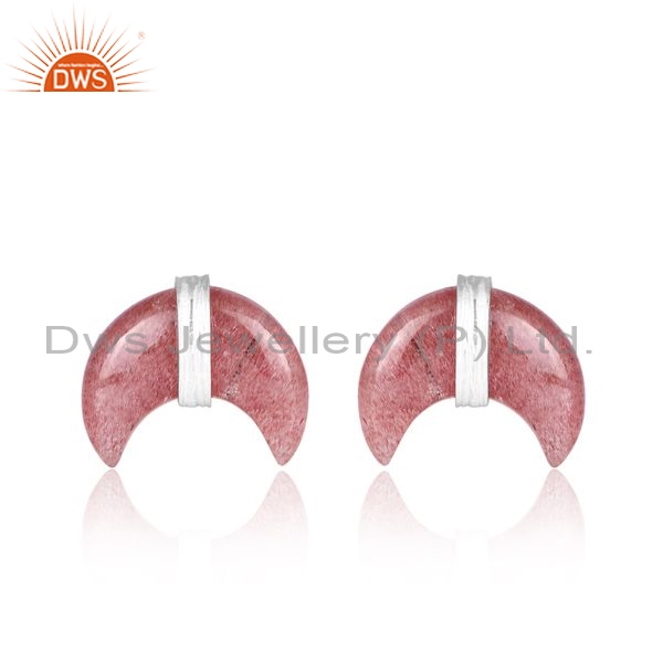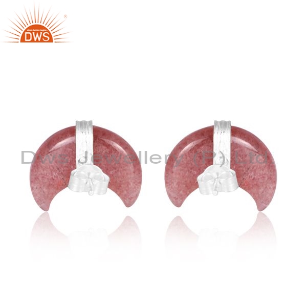 Sterling Silver Earrings With Strawberry Quartz Plain Moon