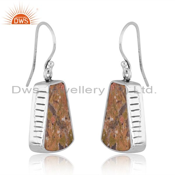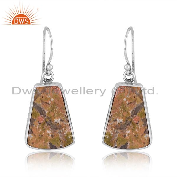 Sterling Silver Earrings With Unakite Coin Taper Stone