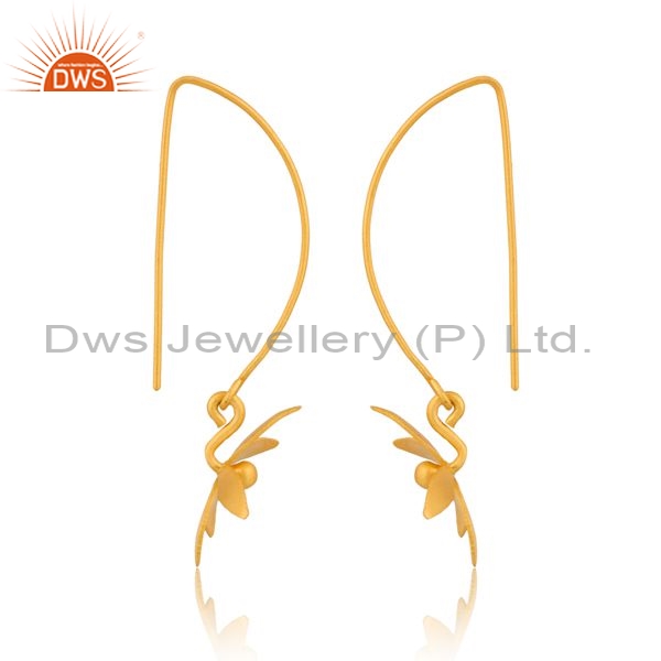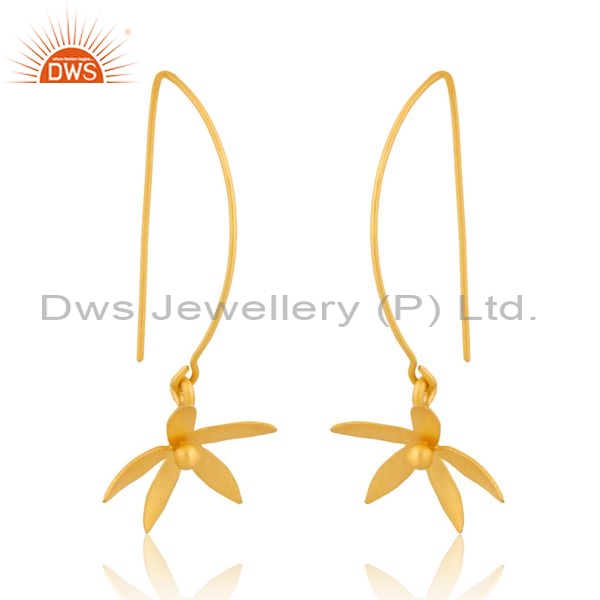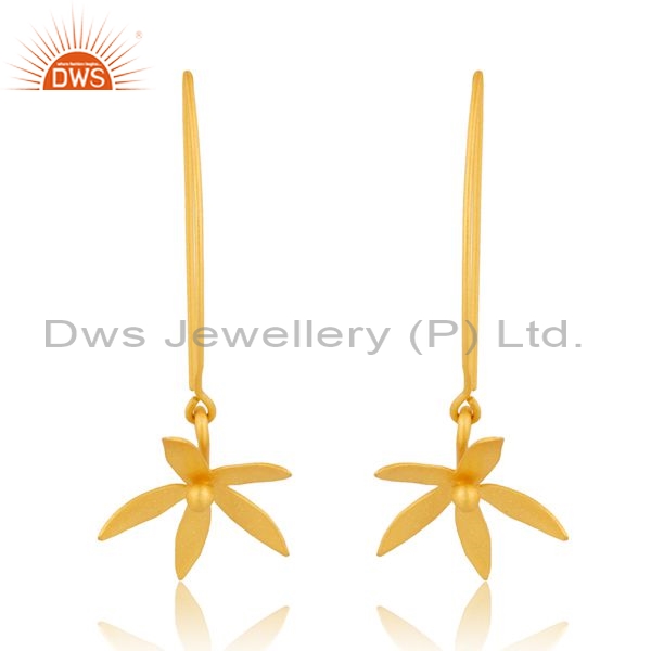Sterling Silver Floral Shaped Earring With 18K Gold Drop