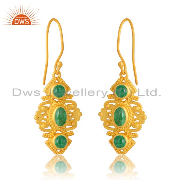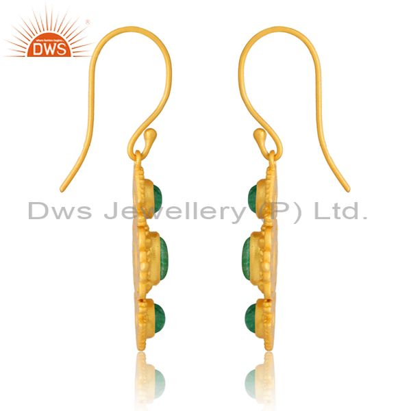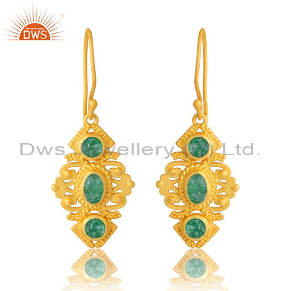 Sterling Silver Gold Earring With Aventurine Natural Green