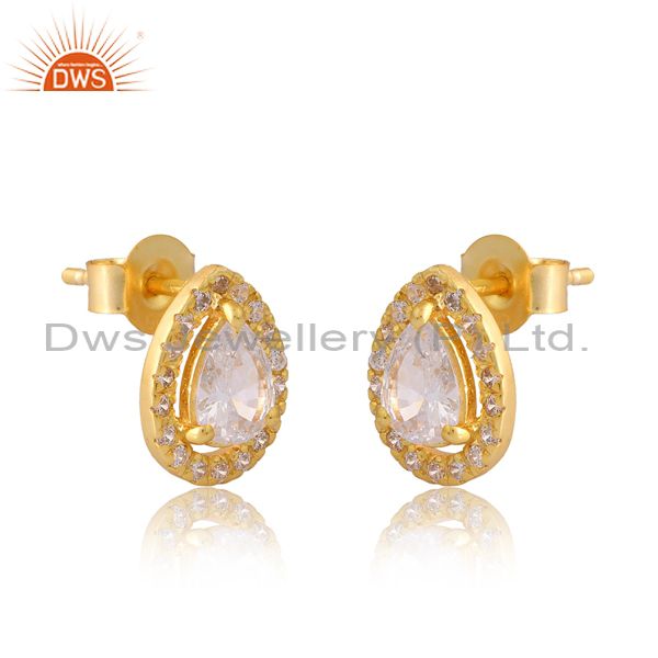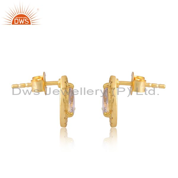 Sterling Silver Gold Earring With Cubic Zirconia Cut