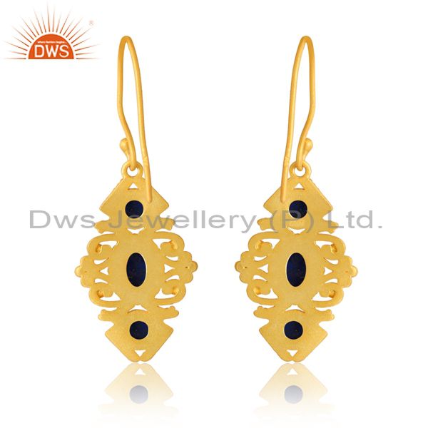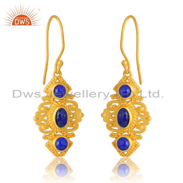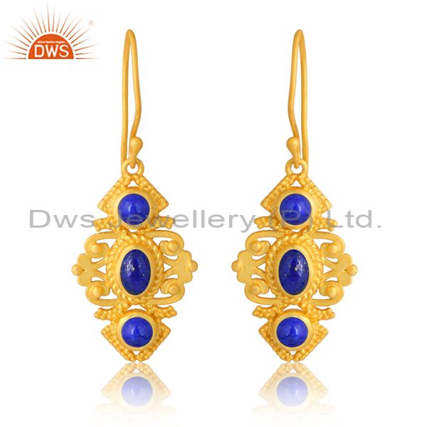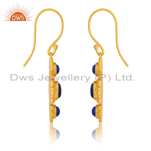 Sterling Silver Gold Earring With Lapis Cabochon
