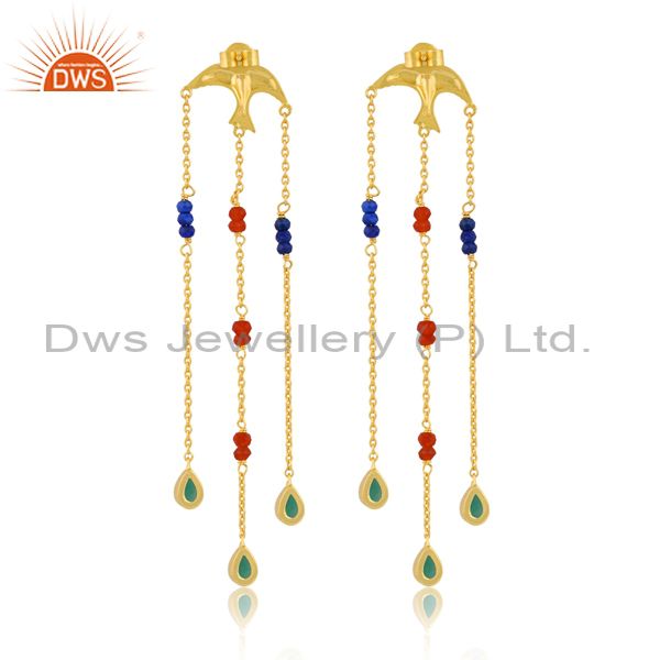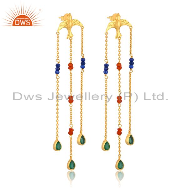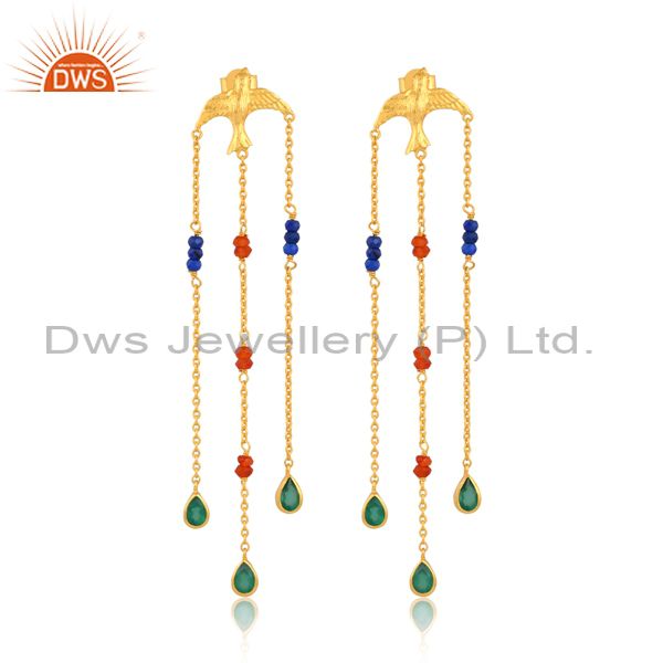 Sterling Silver Gold Earring With Lapis, Green & Red Onyx