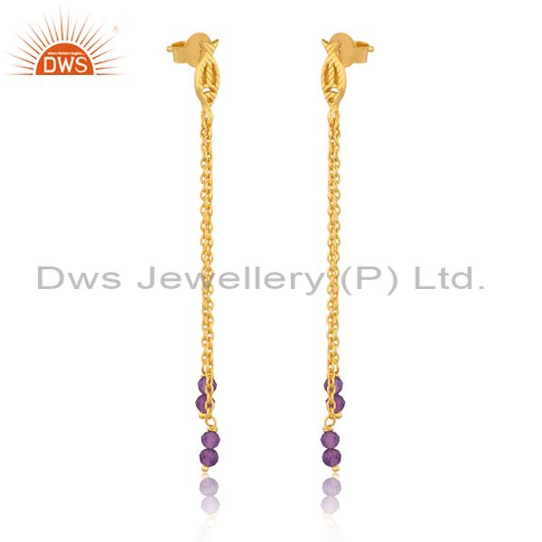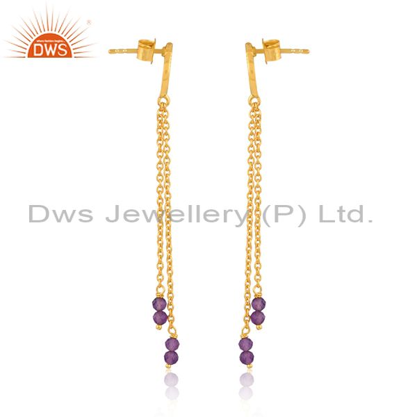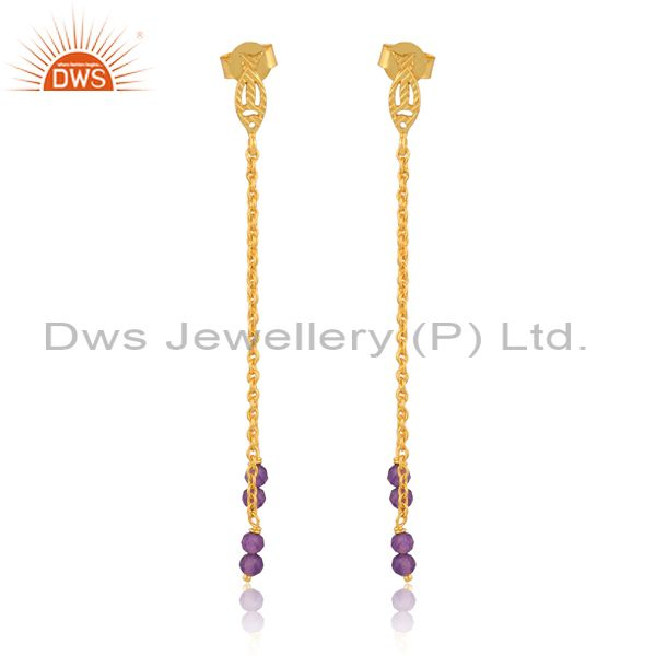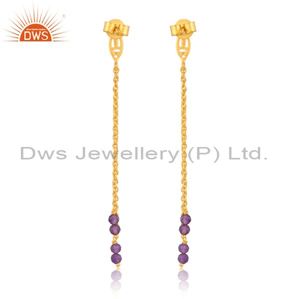 Sterling Silver Gold Earrings With Amethyst Round Stone