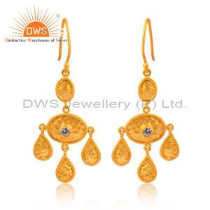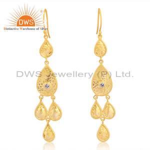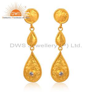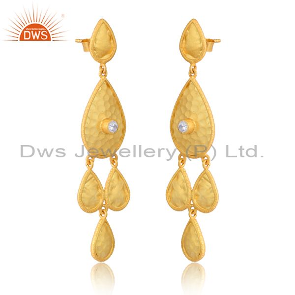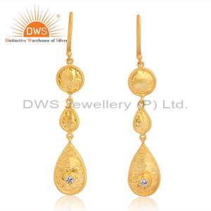 Sterling Silver Gold Earrings With Cubic Zirconia And Pati