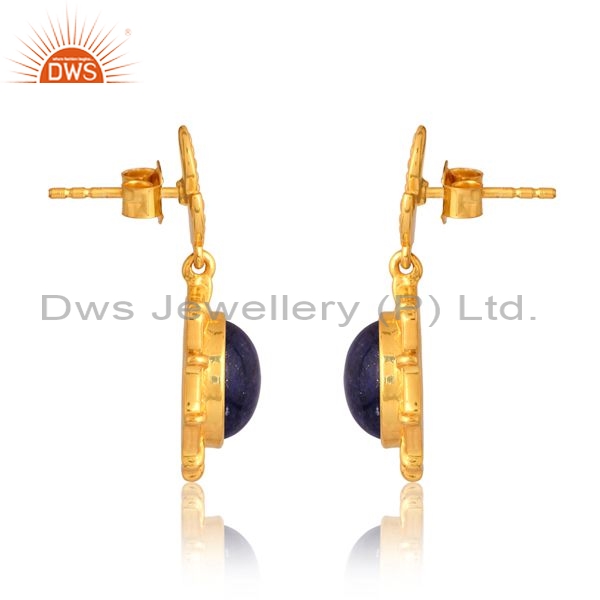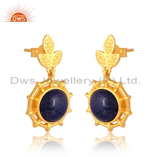 Sterling Silver Gold Earrings With Lapis Round Cut