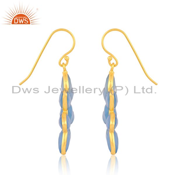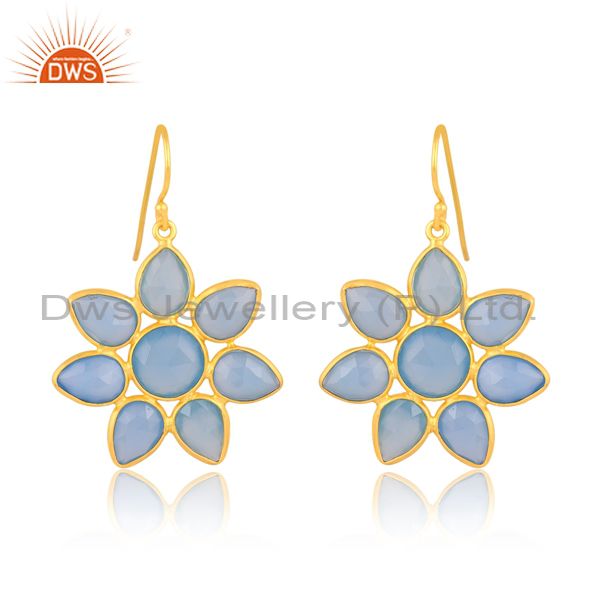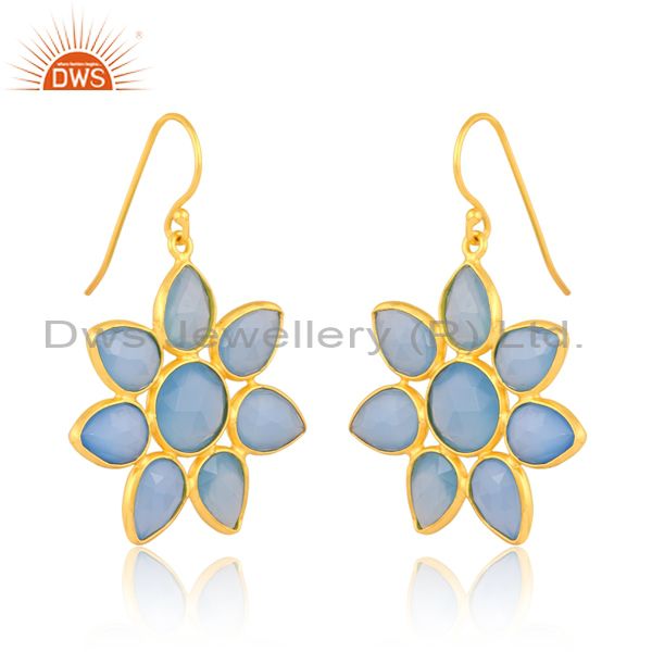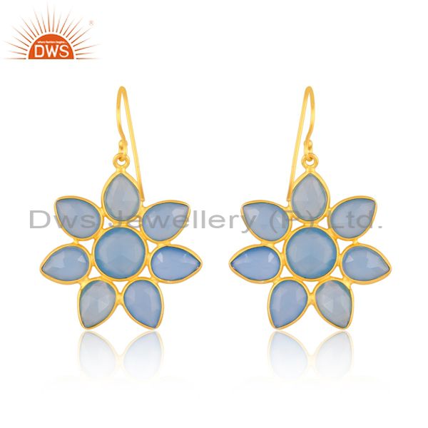 Sterling Silver Gold Plated Blue Chalcedony Studded Earring