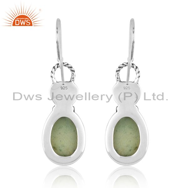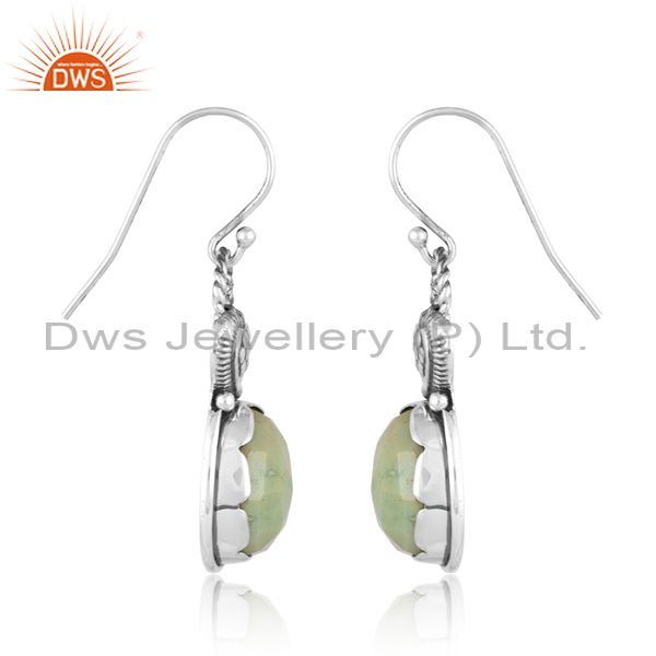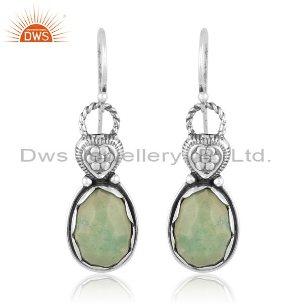 Sterling Silver Oxidized Drop Earring With Chrysoprase Gem