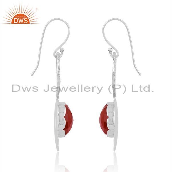 Sterling Silver Oxidized Earring With Red Onyx On Top
